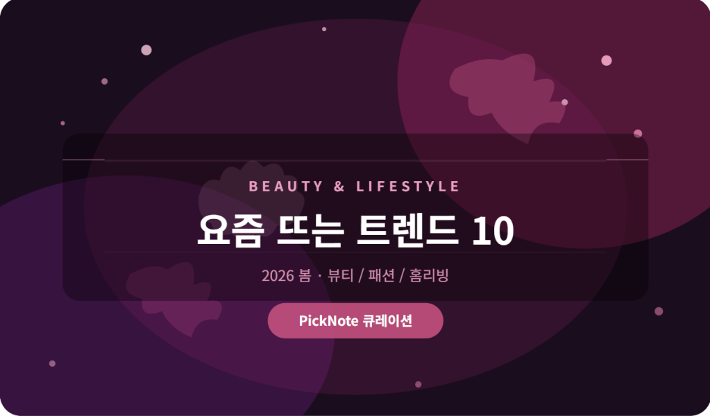 2026년 봄, 요즘 많이 찾는 뷰티·생활 감성템들을 한데 모아봤어요. 스킨케어부터 패션, 홈리빙까지 가볍게 둘러보세요.